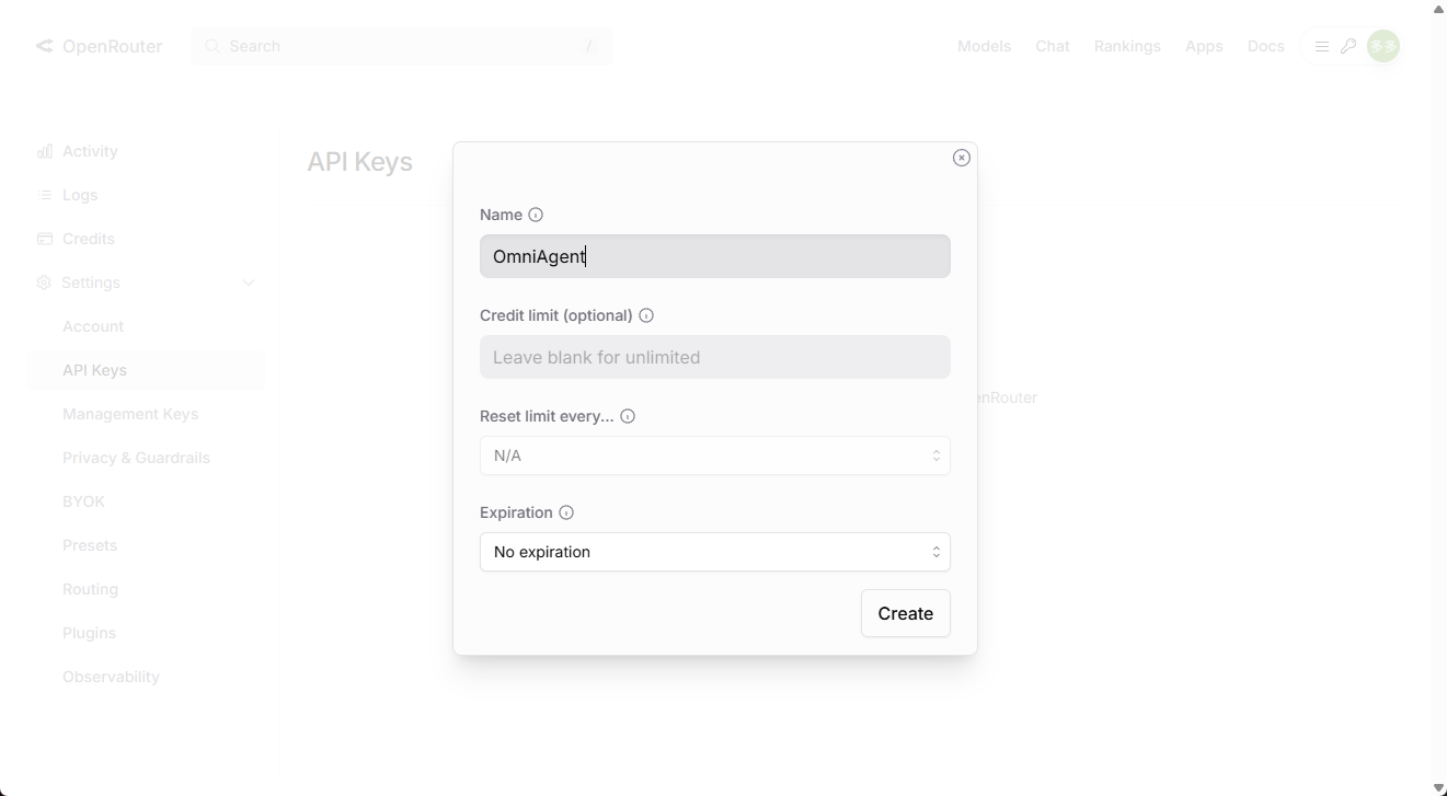 本文介绍如何在 OmniAgent 中配置 OpenRouter 模型服务。